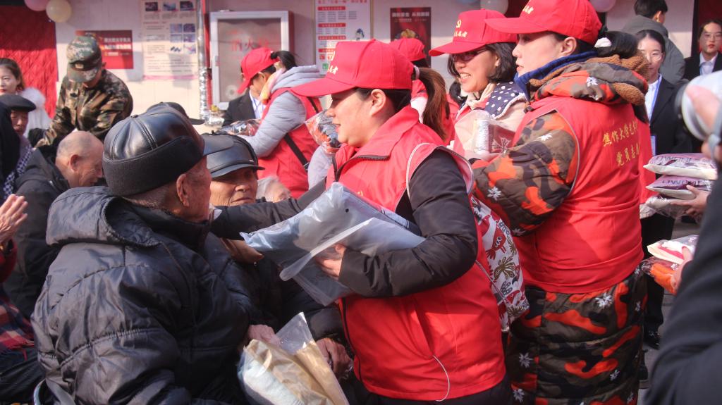 “献出一份爱心,托起一份希望”,本次活动共筹得善款5752元,为老人们购置了围巾、帽子、手套、棉袜、毛巾等礼品,由焦作大学艺术学院的老师和同学们分发给老人。