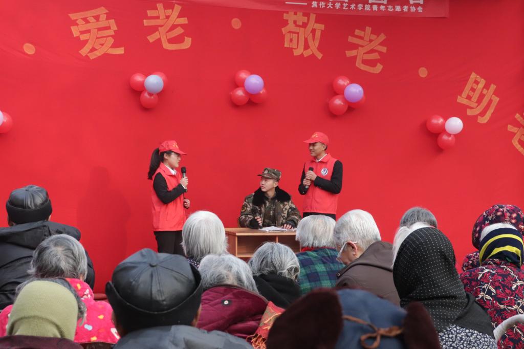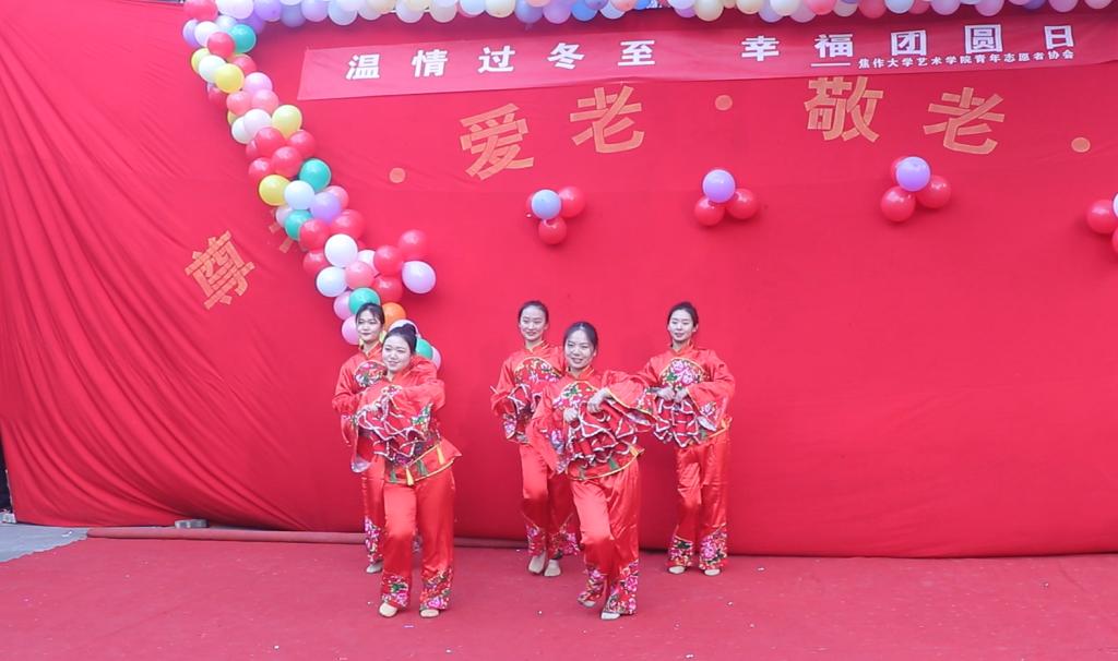 2019年12月22日下午,焦作大学艺术学院党总支携艺术学院青年志愿者协会在焦煤集团敬老院举办以“温情过冬至,幸福团圆日”为主题的冬至慰问演出,为老人们在寒冷的冬至日带来一场温暖的才艺盛宴。