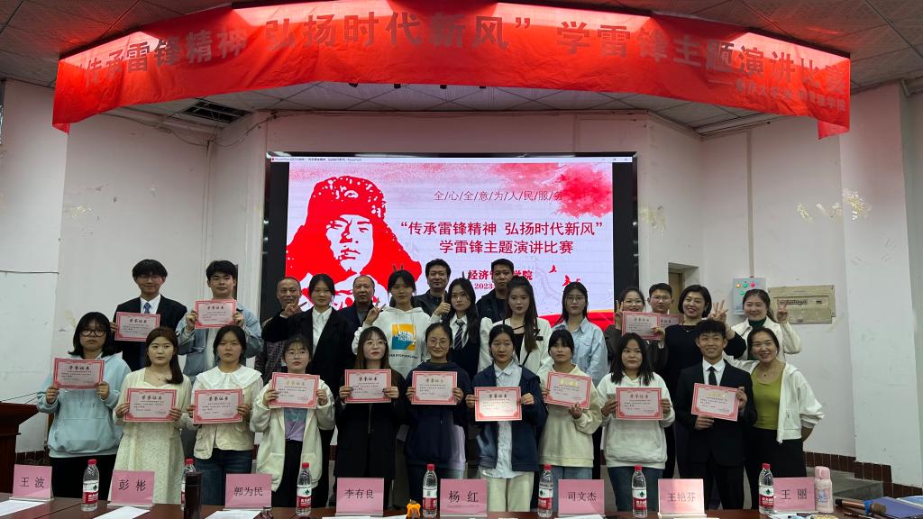 2023年是毛泽东等老一辈革命家为雷锋同志题词60周年。为深入学习宣传贯彻党的二十大精神和习近平总书记对深入开展学雷锋活动作出的重要指示精神,大力弘扬雷锋精神和奉献、友爱、互助、进步的志愿精神,引导我院广大青年志愿者以实际行动书写新时代的雷锋故事,根据学校正大食品有限公司通知要求,经济管理学院于2023年3月9日在北校区报告厅举行了“传承雷锋精神 弘扬时代新风”学雷锋主题演讲比赛。经济管理学院党总支书记杨红、副院长李有良、学工办主任兼团总支书记司文杰以及全体辅导员参加了此次演讲比赛。