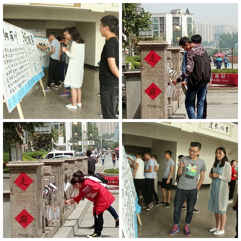 活动分为“饮水思源”、“捐物套圈”、“画出你的美 妆出女神范”、“青春走廊”四个部分。其中,饮水思源活动通过免费送茶水,让广大青年同学在喝茶水的同时深刻感悟“吃水不忘打井人”饮水思源的道理。捐物套圈,是一个奉献爱心,以物品交换物品的活动。画出你的美、状出女神范,向同学们传达了礼仪文化知识,使更多的同学了解化妆礼仪的重要性。而青春走廊,更是为大家展示了优秀的书法作品、摄影作品以及文学作品,不仅让大家体会到中华文化“源远流长,博大精深”厚重底蕴,同时也烘托出一幅“文化焦大”的美景。