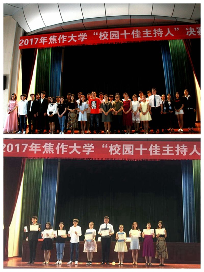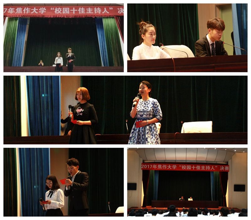 5月16日下午3时,由焦作大学学生会承办的校园“十佳主持人”决赛在焦作大学南校区学术报告厅成功举办。出席本次比赛的评委有姜楠老师、张梦楠老师、梁超老师、焦作大学第二十六届学生会主席刘永续、焦作大学第二十六届学生会副主席李红晋。
