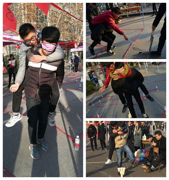 活动在精彩的舞蹈“舞动青春”和传统武术“武韵太极”节目表演中拉开序幕。此次活动由“灯火良宵”“轻功水上飘”“正话反说”“变有钱”“你是我的眼”“爆破音吹蜡烛”“两人三足指压板折返跑”“情意浓浓”共八个项目构成。各项目的设计融入了部分专业技能及中华传统文化,旨在让同学们在迎新春庆元旦的氛围中感受中华传统文化的独特魅力,提高对专业技能的学习动力。大家踊跃报名,积极参与到活动中。其中“猜灯谜”和“正话反说”两个项目,让同学们在轻松愉快的游戏中,对一些成语,名人名言,英语词汇有了更深一步的了解,重温课堂知识,感受知识带来的乐趣,同时也体会到语言的独特魅力。特别是“情谊浓浓”项目中,当同学们拿起手机给父母拨通电话的瞬间,激动的心情涌上心头,从他们的眼神中我们看到了对父母那浓浓的亲情,那一瞬间才发现,原来父母都会因为儿女的一句节日问候而感到满足。冬日的寒意丝毫没有影响同学们的参与热情,活动最终在欢声笑语中落下帷幕。