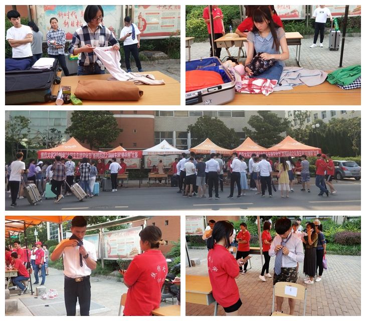 此次活动由“感悟生活”和“秀舍可参”两大部分构成。其中“感悟生活”以“叠衣服”比赛、“打领带”比赛为平台,让同学们感悟生活的“美”,参赛选手可谓是大显身手,想尽一切办法将衣服既快又整洁的摆放在行李箱中,打领带的方式更是多种多样,一条简单的领带经同学们的巧手整理变得更加别致,也彰显出当代大学生风采。“秀舍可参”以“优秀宿舍”评选、“优秀宿舍文化”评选为平台,让同学们“秀”出美好生活,同学们或以视频展示的形式,或以精细装点的风格,让大家看到了各具特色的宿舍文化,有以“家”为主题的温馨宿舍,有以“梦航”为主题的奋进宿舍,以“陋室铭”为主题的书香宿舍更是令同学们赞不绝口。