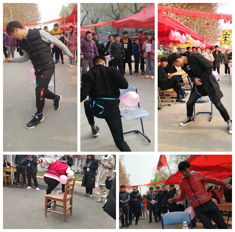 团体赛中,各院系代表队分别以朝代名称为队名参赛。活动由“老鼠偷油”、“虎虎生风”、“神龙摆尾”、“老马识途”、“金鸡独立”、“佩奇贺年”、“跨时空对决”等七个环节构成,各环节将十二生肖元素融入其中,使其充满了中国传统文化特色,其中“跨时空对决”环节成为了此次活动的亮点,活动通过让参赛队员回答相应朝代的历史、文化等知识点,回顾中国历史,重温传统文化,同时收获辞旧迎新的祝福。各代表队队员齐心协力,过关斩将。最终,艺术学院代表队与土木建筑工程学院代表队分别在南北校区集体赛中勇夺桂冠。