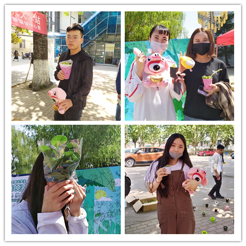 一大早,新媒体中心成员便提前做好准备工作,认真将包装好的花种精心分类、摆放。在阳光照耀下,绿植领养活动火热开展。活动现场热闹非凡,众多喜爱绿植的同学闻讯赶来,通过参与“套圈”、“绿植刮刮卡”等活动,免费领取到种子和多肉植物。此次活动共发放绿植700余盆、种子400余份,线上超过1200人关注。