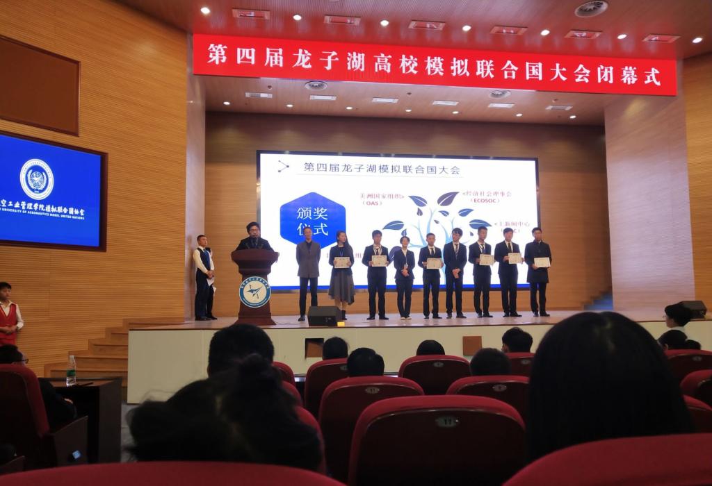 第四届龙子湖高校模拟联合国大会为期两天,共分为三个会场,围绕“无人机的发展和管理、1969年足球战争、贫穷”三个议题进行讨论。我校协会代表李志浩、王鹏飞都是首次参会,在“1969年足球战争”议题中以尼加拉瓜外长的身份出席会议,以严谨的学术态度,会前充分的资料储备,会场上精彩的发言和演说,荣获“最具潜力”奖。