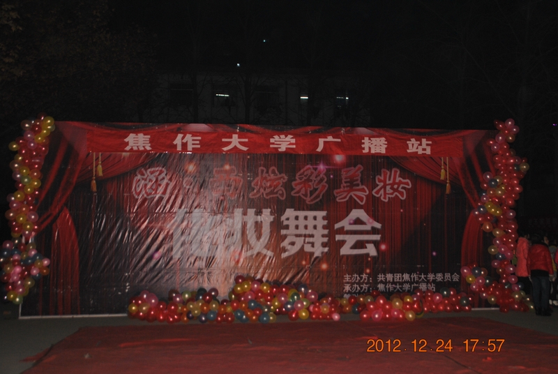 2012年12月24日晚,校广播站在北校区举行了一年一度的“化妆舞会”。本次舞会是以“魅力广播,和谐焦大”为主题。校党委副书记焦金雷同志也亲临舞会现场。