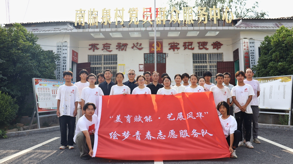 为深入学习宣传贯彻习近平新时代中国特色社会主义思想,全面贯彻落实党的二十大精神,引领青年学子在社会实践的“大思政课”中受教育、长才干、作贡献,艺术学院于2025年7月2日至14日,组织“绘梦青春”志愿服务队奔赴孟州市赵和镇南临泉村,开展“美育赋能·艺展风华”暑期社会实践活动。