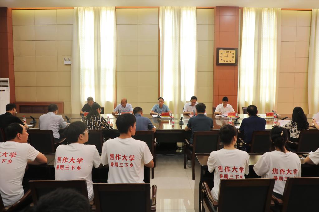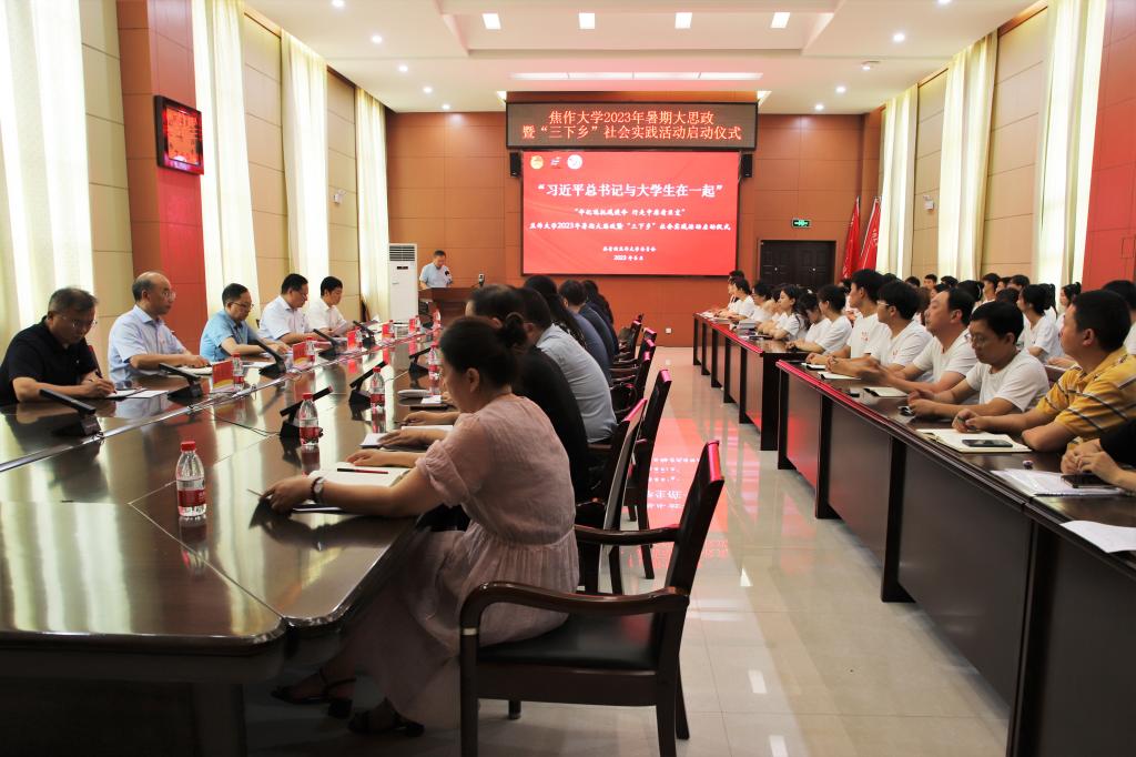 为深入学习宣传贯彻习近平新时代中国特色社会主义思想,全面贯彻落实党的二十大精神,切实发挥共青团作为青年在实践中学习中国特色社会主义和共产主义的学校作用,6月30日上午,“牢记嘱托践使命 行走中原看巨变”焦作大学2023年暑期大思政暨“三下乡”社会实践活动启动仪式在行政楼201隆重举行。